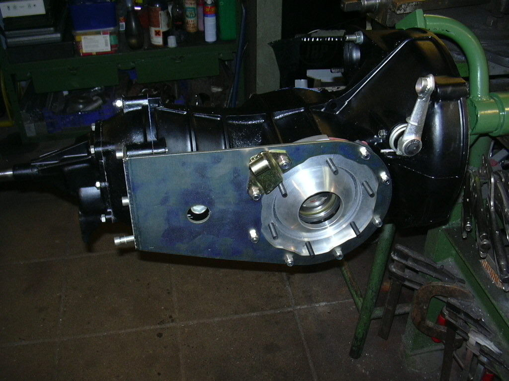 Nybyggd förstärkt växellåda avsedd för en Vw Typ 1 -50. Typ 2 noskon har använts för att få växelväljaren i rätt nivå.