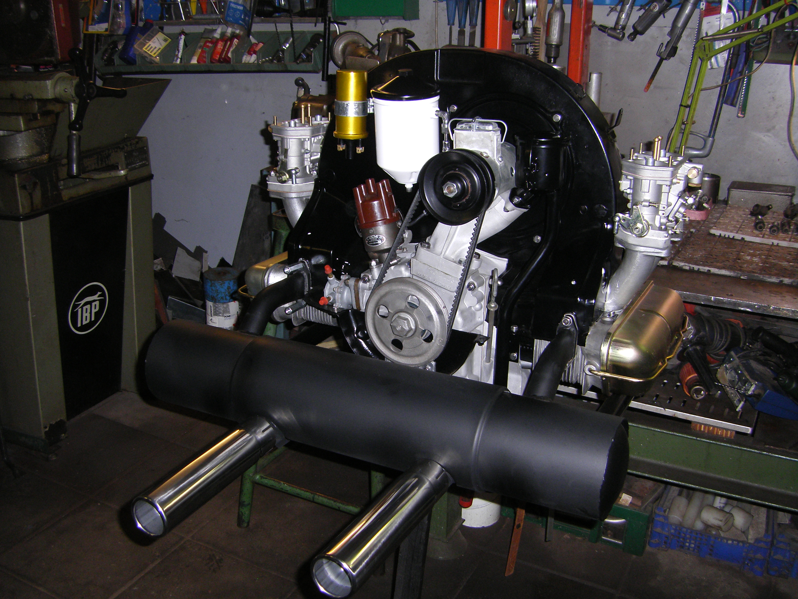 Nybyggd 1915 cc motor. Skall monteras i en äldre Volkswagenbuss, med full last behövs lite kraftigare resurser vad gäller drivlinan för att kunna hinna med i den moderna trafikrytmen.