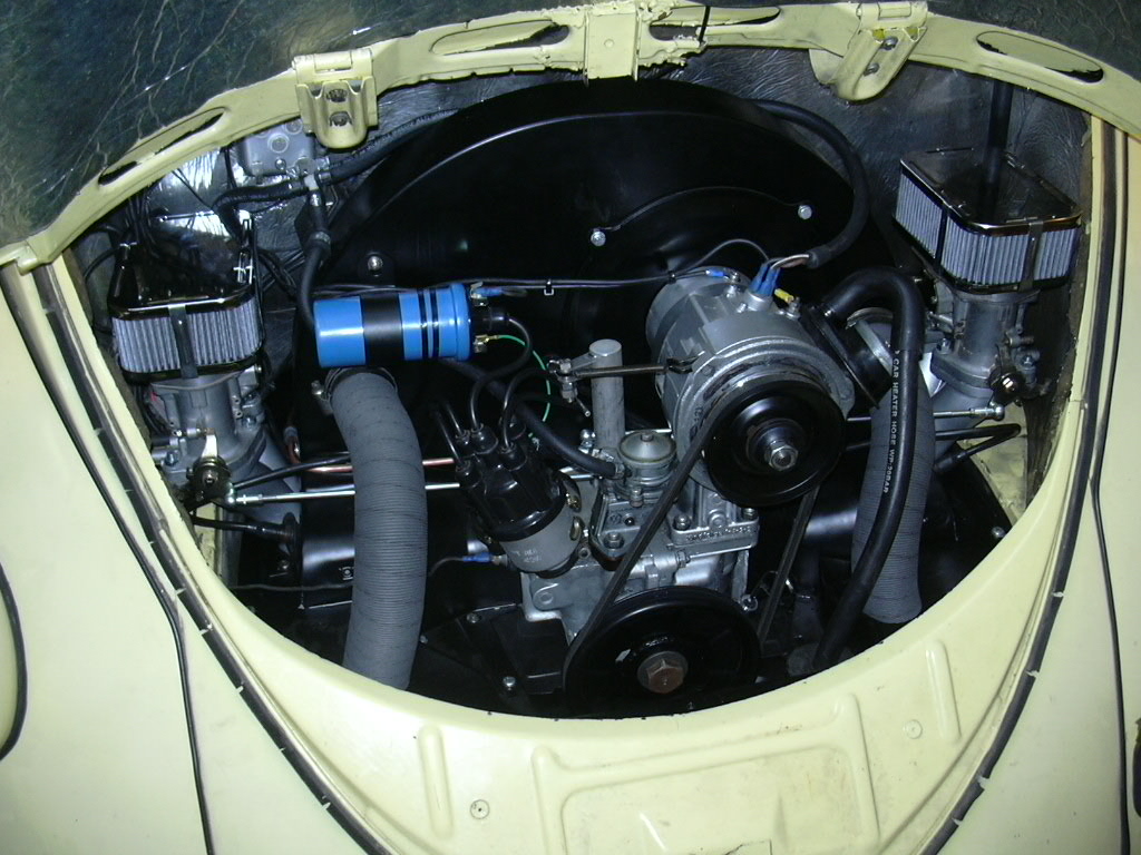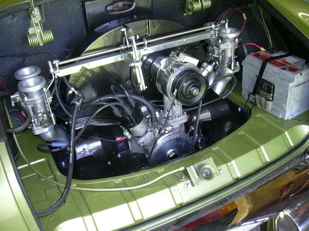 Renoverad Porsche 356 motor. Något modifierad med utbytt kamaxel, större cylindersats samt Weberförgasare. Motorns oljesystem är också ombyggt till ett fullflödessystem då original delfiltrering av oljan ej är tillräcklig.